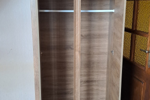 Pojemna szafa do sypialni lub innego pomieszczenia. Posiada dwie szerokie przegrody na ubrania oraz półki. Elegancki i praktyczny mebel