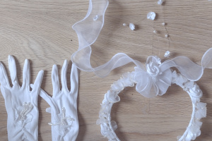 Wraz z wiankiem torebką i rękawiczkami. Posiadam dodatkowo ładne bolerko ciepłe za 25 zl