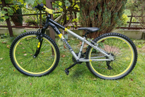 Przerzutki tył: Shimano 7 przełożeń, przód Shimano 3 przełożenia, zmiana w klamko-manetkach typu V-Brake firmy Shimano,