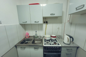 Kuchnia - nowe szafki kuchenne, kuchenka gazowa, lodówka, kuchenka mikrofalowa