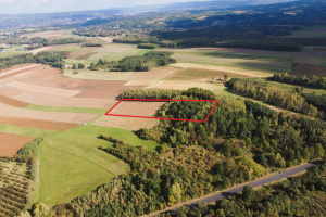 Typ: działka rolna – częściowo zalesiona, właściciel złożył wniosek o ujęcie działki w MPZP pod rekreację.
