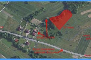 Na sprzedaż działka budowlana o pow. 57arów w miejscowości Jabłonica Polska/ Haczów. Na dzaiłe wydane 2 decyzje o warunkach zabudowy (część środkowa i południowa działki) oraz pozwolenie na budowę domu jednorodzinnego (w części północnej działki). Działka płaska widokowa,z minimalnym nachyleniem w kierunku południowym, otoczenie drzewa liściaste, dużo zieleni, niepodal od północy las i natura 2000, dostęp poprzez dzialke drogową gminną do drogi powiatowej o nawierzchni asfaltowej , 70m od działki prąd, woda, gaz, kanalizacja. Ziemia grunt klasy 4. Przez jablonica polską od strony wschodniej przebiega budowana obecnie droga S19 wraz z węzłem który bedzie zlokalizowany ok 4-5 km od działki. Idealne miejsce na budowę domu, szybki dostep do drogi S19 (5min) a nastepnie do Krosna 10min, Rzeszów drogą S19 (w roku 2026 po ukończeniu budowy drogi S19). W miejscowości sklep spożywczy (3min), szkoła podstawowa (2min). Srzedaż bezpośrednia przez właściciela. Sprzedaż w całości wraz z pozwoleniem na budowę i projektem domu, cena 4 800 zł/ ar, do niewielkiej negocjacji. Mozliwe wykonanie projektu zamiennego w cenie działki - do uzgodnienia. Działka warta zainteresowania z uwagi na lokalizacje, bliski dostęp do S19, cisze i spokój (2 linia zabudowy od drogi powiatowej) idealne miejsce na budowe domu.