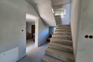 Prezentowana nieruchomość jest w stanie deweloperskim, pokryta blachodachówka, ocieplona 20 cm styropianem grafitowym, poddasze ocieplone celulozą.