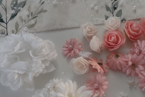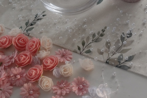 Sprzedam dodatki na stół komunijny. Wazon wysokość 23 cm. Sznurki z perełkami. Dwie ozdoby na świeczniki plus kwiatuszki i trzy nieużywane świece.(Wazonów posiadam więcej) Cena za calosc
