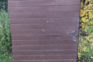 Sprzedam drzwi garażowe metalowe, ocieplone z demontażu bez futryny z zamkiem.