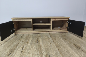 Do sprzedania piękna nowa szafka pod TV w kolorze dąb wotan o wymiarze 120 cm. Odbiór osobisty w Krośnie. Szafka jest już złożona jak widać na zdjęciach.