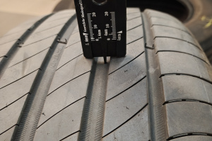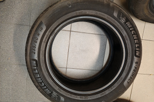 Mam do sprzedania 2 szt. opon Michelin E Primacy 235/60 R18 103 W 2023 r. w bardzo dobrym stanie oraz 2 szt. gratis opon Michelin E Primacy 235/60 R18 103 W 2023 r. z widocznymi obtarciami bocznymi (prawdopodobnie o krawężnik) w tym jedna opona naprawiana od strony bieżnika. Wysokość bieżnika około 5 mm.