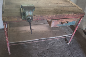 Stolik z dużym ! Starym imadłem imadłem 350 zł