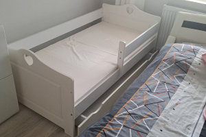 Do sprzedania łóżeczko dla dziecka używane zaledwie kilka razy jak nowe z szufladą na pościel lub jakieś rzeczy, nie zniszcone nie poobdzierane z nowym materacem! ani razu nie było na nim spane materac nówka. Wymiary łóżka długość 184 cm. szerokość 86 cm. Więcej informacji pod telefonem 883 109 580. POLECAM