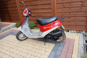 Sprzedam skuter Samyang. Ważny przegląd i ubezpieczenie. Problemy z gaźnikiem. Benzyna. Cena 300zł. telefon 577 025 623