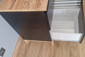 Szafka posiada dwie szuflady i kosz na bieliznę.