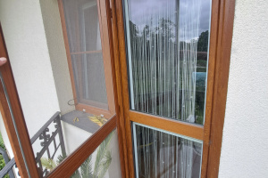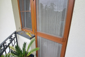 Okna posiadają rolety wewnętrzne i moskitiery zewnętrzne.