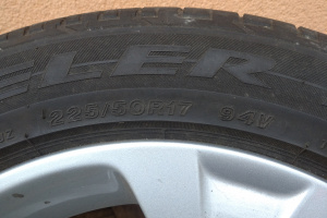Sprzedam 4 opony letnie 225/50/17 Bridgestone, wysokość bieżnika 5-6 mm, cena za komplet 400 zł, tel. 505-338-695