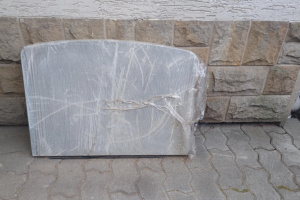 Kominek posiada przeszklone drzwiczki i płyty z kamienia na każdej ściance zewnętrznej. Palenisko wyłożone szamotem. Bardzo ładny i dobrze utrzymany kominek.
