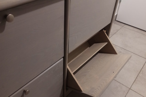sprzedam nową szafkę na buty z drewna sosonowego , kolor szary matowe wykończenie podkreślające rysunek drewna , wymiary : szer.110 cm - gł 29 cm - wys. 80 cm , szafka jest nowa , odbiór Krosno