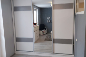 Pozostawiam wyposażenie dużego AGD i mebli jak jest to widoczne na zdjęciach, czyli zabudowaną szafę w pokoju z dużym lustrem, narożnik z funkcją spania, stolik kawowy, stolik pod telewizor , szafka na buty w przedpokoju, pralkę, lodówkę, kuchnie gazowa.