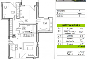 Mieszkanie 65 m², 2 balkony, I piętro – Zielone Osiedle – etap 2