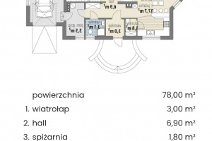 W domu Arkadia może wygodnie zamieszkać pięcioosobowa rodzina. Główną część parteru zajmuje otwarty pokój dzienny, połączony z umieszczoną w przeszklonym wykuszu jadalnią oraz kuchnią. Pośrodku salonu znajduje się kominek, który skutecznie ogrzeje to wnętrze w chłodniejsze dni i wieczory. Na parterze jest jeszcze sypialnia i łazienka oraz kotłownia przez którą można wejść do garażu.