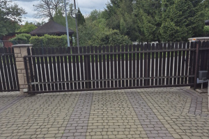 Sprzedam elementy ogrodzenia ze sztachet z demontażu:10 szt przęseł o wymiarach 2,80 m każde, bramę przesuwną 5m, furtkę 1 m. Elementy widoczne na zdjęciach, aktualnie są zdemontowane. Odbiór w Krośnie.