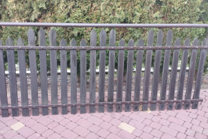 Metalowe przęsła ż drewnianymi sztachetami o wys 90 i 100 cm.