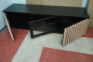 Sprzedam nową, nieużywaną szafkę RTV z nowoczesnymi frontami(drewniane lamele)+ oświetlenie półki szklanej GRATIS