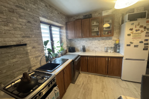 Duża łazienka z wanną i prysznicem, ustawna kuchnia + spiżarka.
