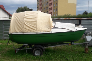 Sprzedam lekki jacht kabinowy BEZ-2 z napędem elektrycznym i ładowarką SOLAR. Dane techn: dł.4,20 m, szer. 2,0 m, ciężar ok. 300 kg, silnik elektryczny zaburtowy 12V- 60 lbs. SOLAR fotovoltaika 140 / 270 W ze sterowaniem komptr. Akumulator 100 Ah TOYAMA, oświetlenie nawigacyjne i wewn. kabiny, miecz obrotowy, zanurzenie 17 cm, 2 miejsca do spania w kabinie, materace w kabinie i na kokpicie, osłona (tzw. bimini) pełna kokpitu na noc, osłona p-ciw słoneczna kokpitu na dzień, pagaje inn,…. Przyczepa – wózek zarejestrowana DMC 650 kg.