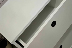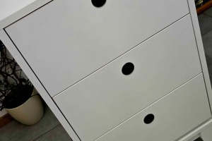 Mam do zaoferowania szafkę wykonaną na wymiar z płyty meblowej w kolorze białym. Wymiary : wysokość 95 cm, szerokość 50 cm, głębokość 40 cm.