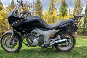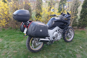 Motocykl używany turystycznie, niedawno wymieniony olej, świece, zestaw napędowy, klocki hamulcowe, opona przód. Wyposażony w wysoką szybę plus deflektor, wysokie gmole, pływające kierunkowskazy i komplet kufrów. Rok prod. 1997, przebieg 85000 km.