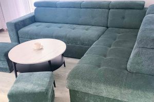 Sprzedam narożnik z funkcją spania w idealnym stanie użytkowany jeden rok dodatkowo dwie wygodne pufy. Rozmiary narożnika : 220 cm/200 cm. Narożnik posiada również pojemnik na pościel.