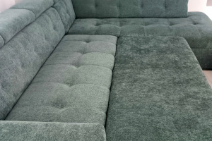 Narożnik z funkcją spania i pojemnikiem na pościel.