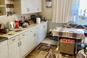 W domu znajduje się: kuchnia, trzy pokoje, łazienka, spiżarka z wyjściem na strych.