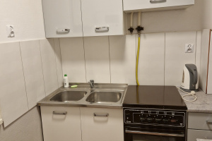 Kuchnia - nowe szafki kuchenne, kuchenka gazowa, lodówka, kuchenka mikrofalowa