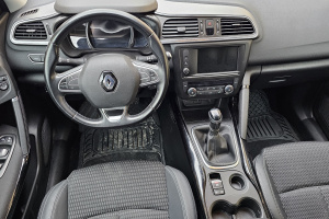 Wyposażenie tego Renault Kadjar jest imponujące i zaspokoi potrzeby nawet najbardziej wymagających kierowców. Wśród licznych udogodnień znajdziemy m.in.: nowoczesny system multimedialny z Bluetooth, USB, AUX, CD i MP3, zestaw głośnomówiący, klimatyzację dwustrefową automatyczną, system nawigacji, kierownicę wielofunkcyjną, czujniki parkowania, kamerę cofania oraz czujnik martwego pola. Dla komfortu podróżowania dostępne są również: komputer pokładowy, tempomat, wspomaganie kierownicy, czujnik deszczu oraz elektryczne lusterka i szyby. Bezpieczeństwo zapewniają systemy ABS, ASR, ESP, ISOFIX oraz liczne poduszki powietrzne i kurtyny powietrzne. Dodatkowymi atutami są światła LED, światła przeciwmgielne, szyberdach oraz welurowa tapicerka. System start-stop przyczynia się do oszczędności paliwa, a system bezkluczykowy ułatwia codzienne użytkowanie.