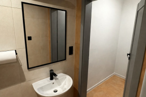 Wnętrze jest jasne, przestronne i funkcjonalne, z możliwością dopasowania układu do własnych potrzeb. Do dyspozycji jest własna łazienka, zaplecze kuchenne oraz wiatrołap, który podnosi wygodę codziennego użytkowania lokalu.
