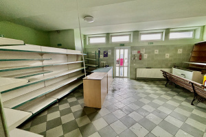 Są w nim sala sprzedażowa 46m2, zaplecze gospodarcze z magazynkiem, biurem, klatką schodową i toaleta. Wyposażony w prąd, gaz, wodę ze studni i kanalizację. System centralnego ogrzewania z piecem gazowym.
