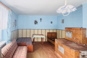 Dom ma powierzchnię około 100 m² i został posadowiony na wysokiej podmurówce. Budynek jest pokryty dachówką. W jego wnętrzu znajdują się dwa pokoje, kuchnia z tradycyjnym piecem kaflowym oraz dodatkowe pomieszczenie, które można przeznaczyć na łazienkę, spiżarnię lub pokój gospodarczy. Do dyspozycji pozostaje także strych oraz piwnica. Dom wymaga remontu, co daje przyszłemu właścicielowi możliwość aranżacji przestrzeni według własnych potrzeb i gustu.