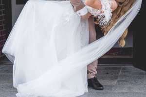 Do sukni dodaję długi, tiulowy welon oraz pokrowiec na suknię.