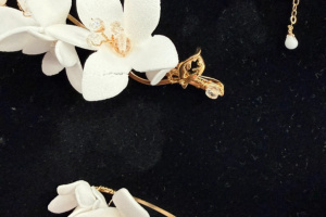 - Kolczyki – „Helenka” wiszące kolczyki ślubne z kwiatami na łańcuszkach – 120 zł