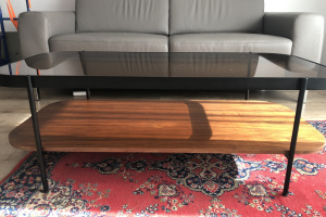 Piękny stolik ława rustykalny . Szkło metal drewno