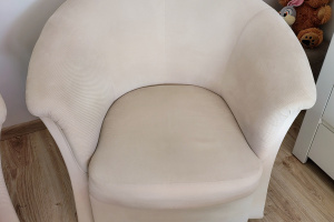 Na sprzedaż posiadam 2 fotele, głębokość siedziska 55 cm, szerokość foteli 90 cm, wysokość 75 cm. Fotele są odświeżone, niestety na zdjęciach wyszły plamy, których nie ma. Cena za 2 sztuki - 250 zł.