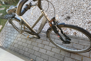 Rower w dobrym stanie technicznym – wszystko działa sprawnie, gotowy do jazdy. Regularnie użytkowany i zadbany.