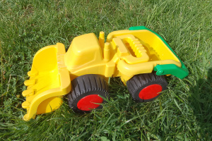 Zjeżdżalnia dla malucha, samochodziki i traktor, wiaderko z narzędziami in inne (zob. zdjęcie).