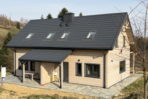 Domy zostały wybudowane w 2025 roku w technologii szkieletowej drewnianej, co zapewnia bardzo dobre parametry termoizolacyjne oraz przyjazny mikroklimat wewnątrz. Dach pokryty jest blachą natomiast elewacja wykonana została z deski elewacyjnej, co nadaje całości wyjątkowego, ciepłego charakteru. Budynki posiadają dodatkowe podpiwniczenie pod częścią tarasu.