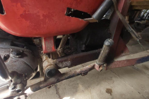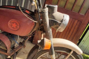 Rama jednorurowa-amortyzatory działają ( nie zapieczone ani nie zaspawane) linki, manetki, przełączniki kierownica, lampa i prędkosciomierz - oryginalne. Bak szczelny, rama wspawana w konstrukcję trajki w taki sposób że da się ją "odratować". Nie pęknięta ani nie spawana.