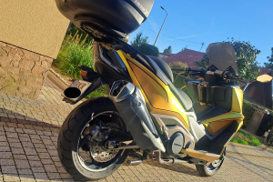 Na sprzedaż maxi skuter klasy Super Touring Kymco AK 550 z 2020 roku. Motocykl został zakupiony w polskim salonie jako czarny mat i krótko po zakupie został profesjonalnie oklejony satynową folią marki Avery Dennison Energetic Yellow Satin. Na żywo robi świetne wrażenie.