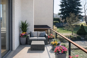 Rozkład pomieszczeń został zaplanowany z myślą o wygodzie i funkcjonalności: na parterze znajdują się dwa pokoje, łazienka, kuchnia oraz przedpokój, natomiast na piętrze – trzy pokoje, dodatkowa łazienka oraz kolejny przedpokój. Na zewnątrz czekają tarasy, które stanowią idealne miejsce do relaksu i spędzania wolnego czasu na świeżym powietrzu.