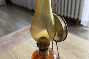 Stara lampa naftowa i szklana popielniczka
