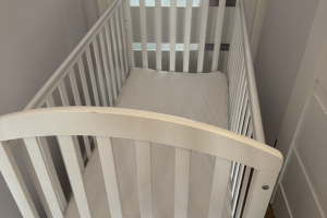 Witam, sprzedam łóżeczko drewniane białe o wymiarach 120x60 (wielkość materacu) po jednym dziecku. Łóżeczko używane sporadycznie, czyste i nieuszkodzone. Posiada małe ślady zadrapania na poręczy powstałe przy montażu. Łóżeczko ma regulowaną wysokość materaca oraz obniżaną barierkę. Zakupione w sklepie dziecięcym w Krośnie. Dodatkowo dołożę materac - czysty, zawsze użytkowany z ochraniaczem i prześcieradłem.