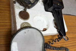 Sprzedam zestaw starych otwieraczy widoczny na zdjęciu . I jakieś rupiecie . Z tego co udało mi się dowiedzieć to lusterko , element lampy i radziecki masażer. Stan jak widać.